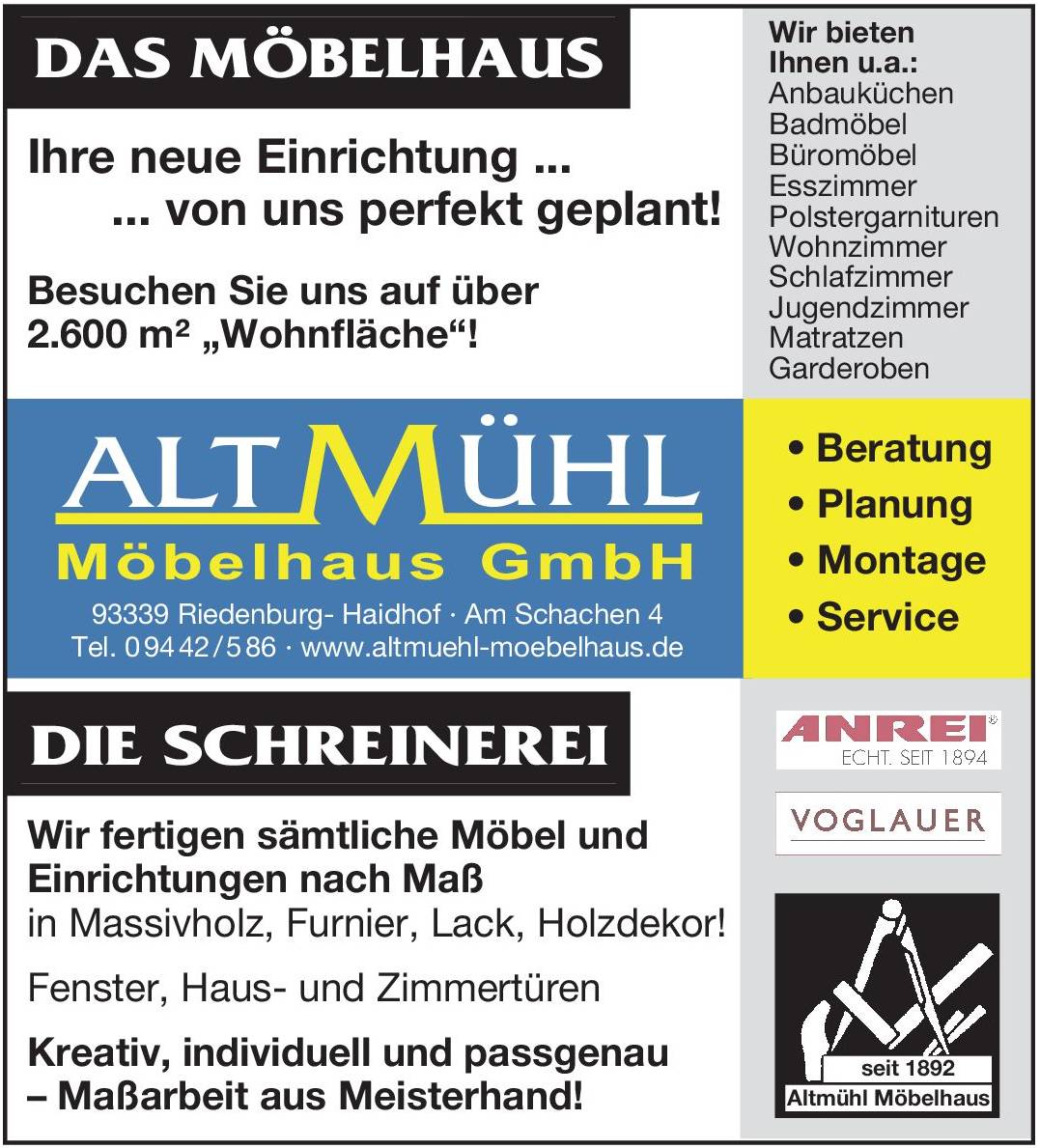 Wir bieten Ihnen ein Vollsortiment an Möbeln und Küchen.